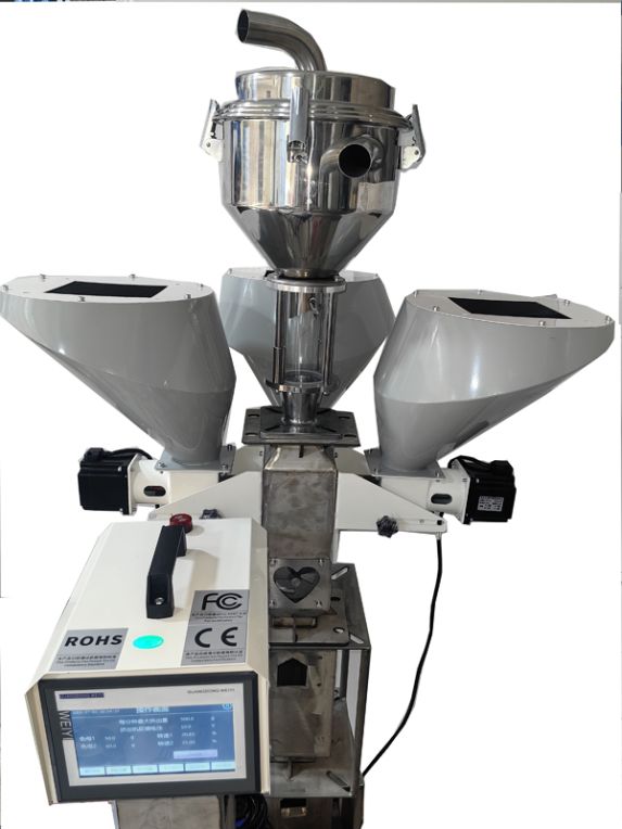 双色自动辅料供料系统能有效解决因填充和原料比重不一导致生产中经常出现分散不匀,产品质量参差不齐问题,降低成本,减少废品,使生产配料及改单更加灵活便捷,可以及时增加或降低的添加比例,使用生产更加灵活方便调配,成本既时降低或废品减少,精确控制颜色快速改色免洗斗,对使用具有有效期的助剂可控添加。